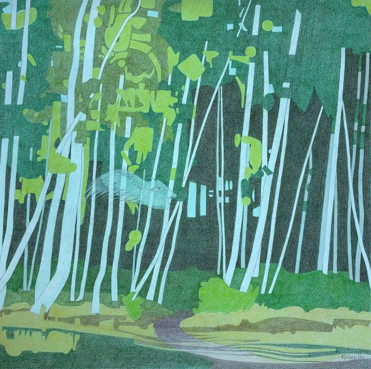 Эта задумка давно у меня зрела, однако именно посещение музея христианской культуры в Петербурге в декабре 2025 года сподвигло меня конкретно взяться за эту работу. Ангела я придумала ещё в 2024 году, но только в январе 2026 года сделала его первый набросок и потом уже интегрировала в берёзовый лес. Ангел таков потому, что, на мой взгляд, он и должен брать таким - непонятным и нечеловеческим. Ведь ангелы это прежде всего бесплотные духовные сущности, те же херувимы и серафимы изображаются как крылатые головы. А здесь представлена моя стилистическая интерпретация.