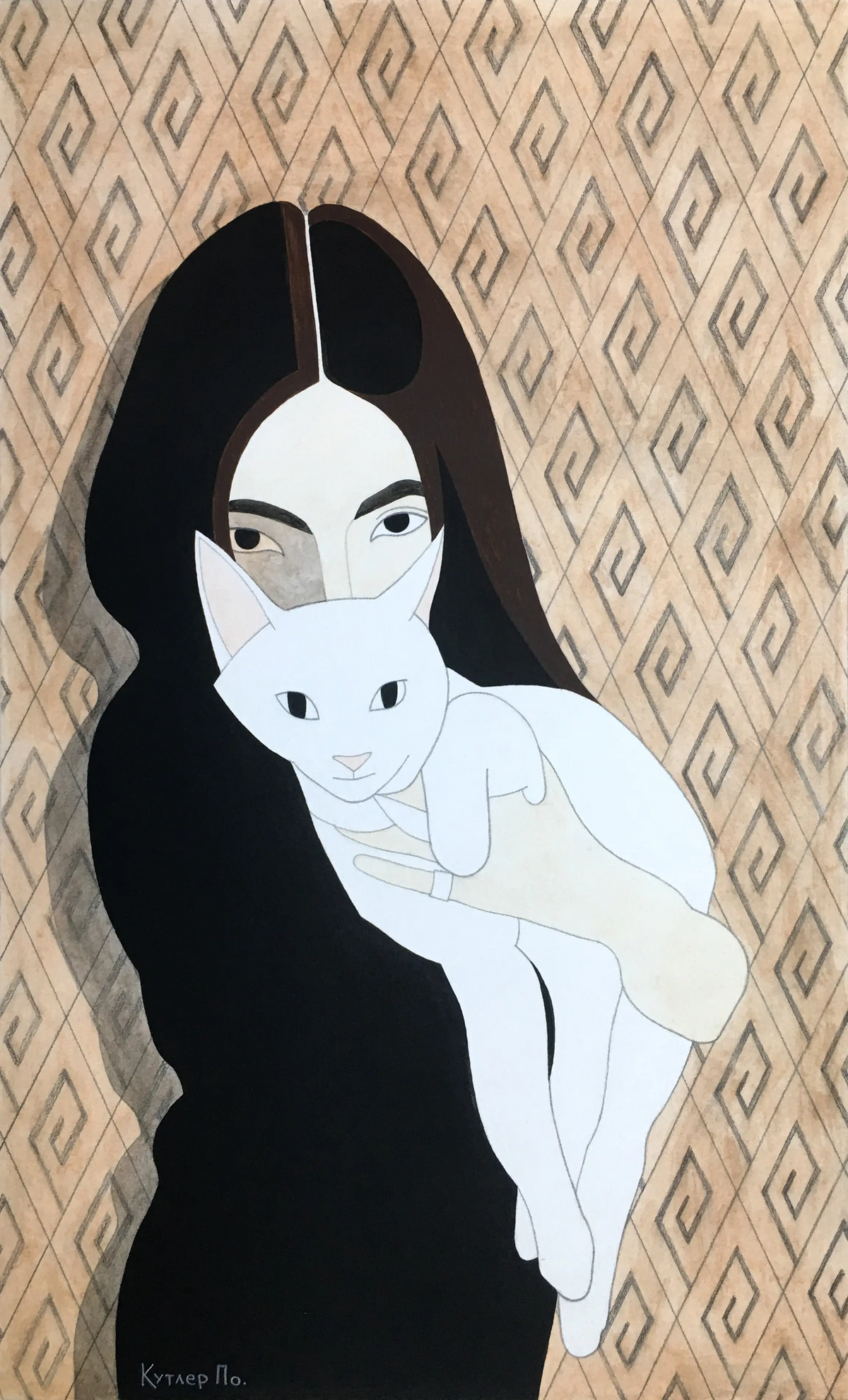 Это автопортрет с котом по имени Пикси. Название работы произошло от игры имён: Цирцея - Кирка - Кира. Сей персонаж из античной мифологии давно мне импонирует. Я с самого рождения среди зверей и нахожу особое удовольствие в общении и жизни с ними.